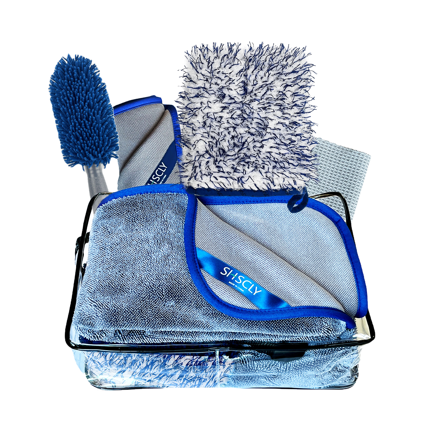 SHSCLY シスクレー 洗車セット 「拭き上げ用 マイクロファイバー洗車タオル2枚 マイクロファイバークロス1枚 洗車ブラシ1個 洗車 スポンジ ミット1個 計5点セット」 (グレー)